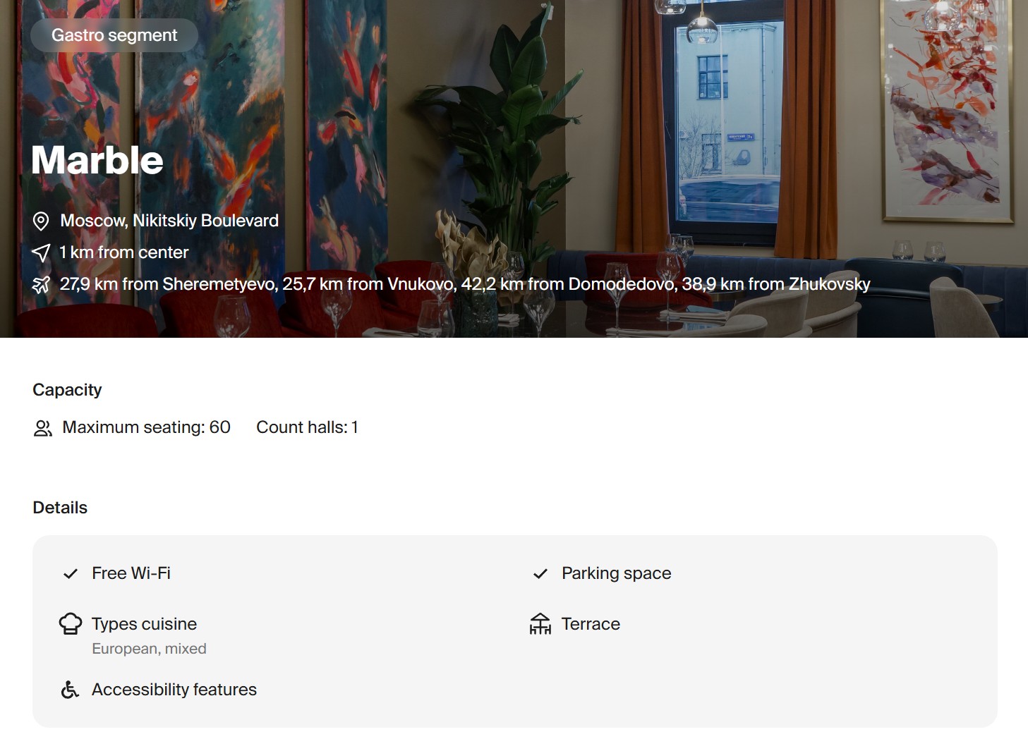 ด้วยทำเลใกล้ศูนย์กลางวัฒนธรรมของเมือง รายล้อมด้วยพิพิธภัณฑ์ โรงละคร และย่านอาหารชื่อดังอย่าง Bolshaya Nikitskaya ที่เต็มไปด้วยแสงสีและกลิ่นอายโบฮีเมียน โรงแรมแห่งนี้จึงช่วยเติมเต็มการพักผ่อนในมอสโกให้สมบูรณ์แบบยิ่งขึ้น